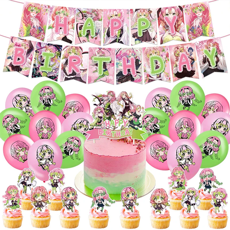 Demon Slayer Kochou Shinobu Kanroji Mitsuri Theme Party Decoration Supplies Girl Birthday Party Balloons Cake Topper Home Deocr Ballons Accessories Aliexpress